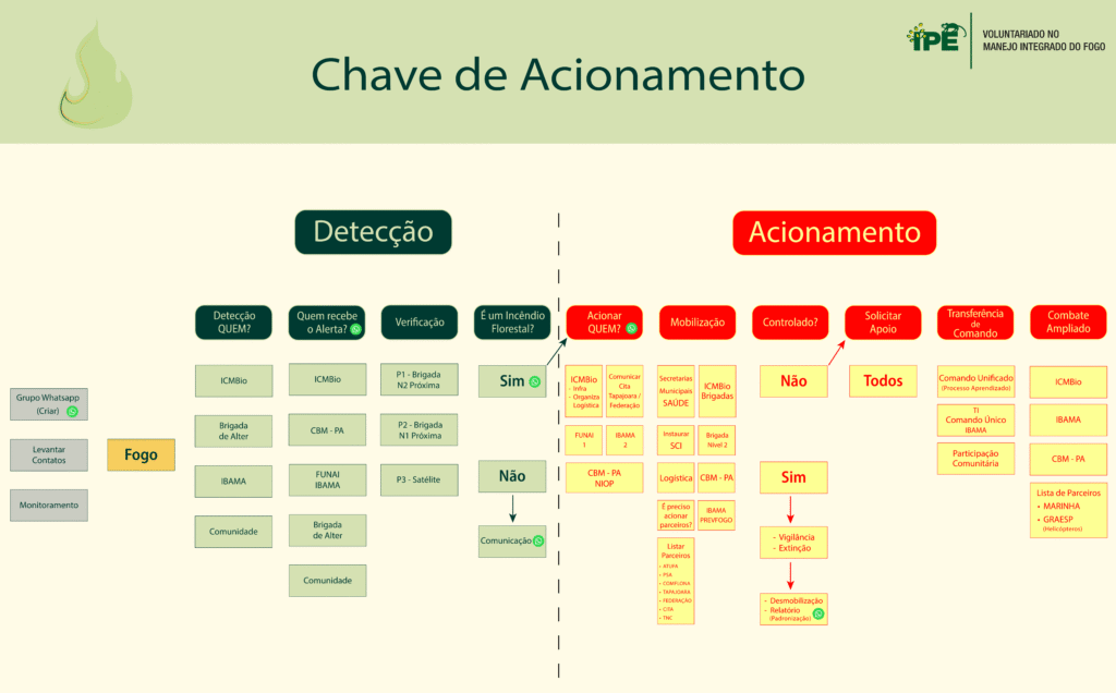 Essas capacitações envolveram ainda o nivelamento de conceitos e a apresentação de ferramentas e recursos para a elaboração de planejamento operativo integrado, que resultaram no estabelecimento da seguinte chave de acionamento: